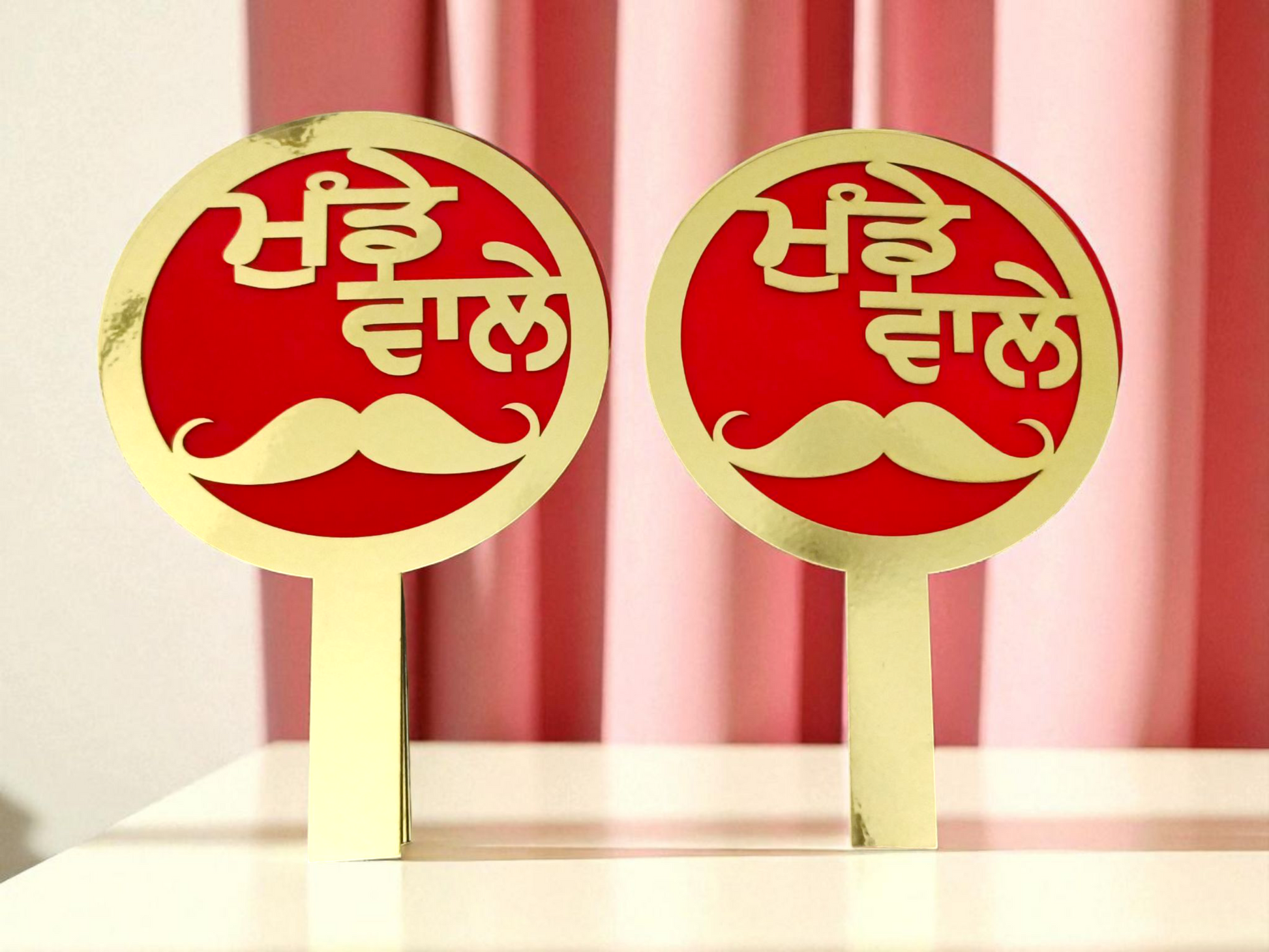 Punjabi "Munde Wale" Fancy Sticks – Set of 2 Mustache Props for Jaago, Mehndi & Wedding Day