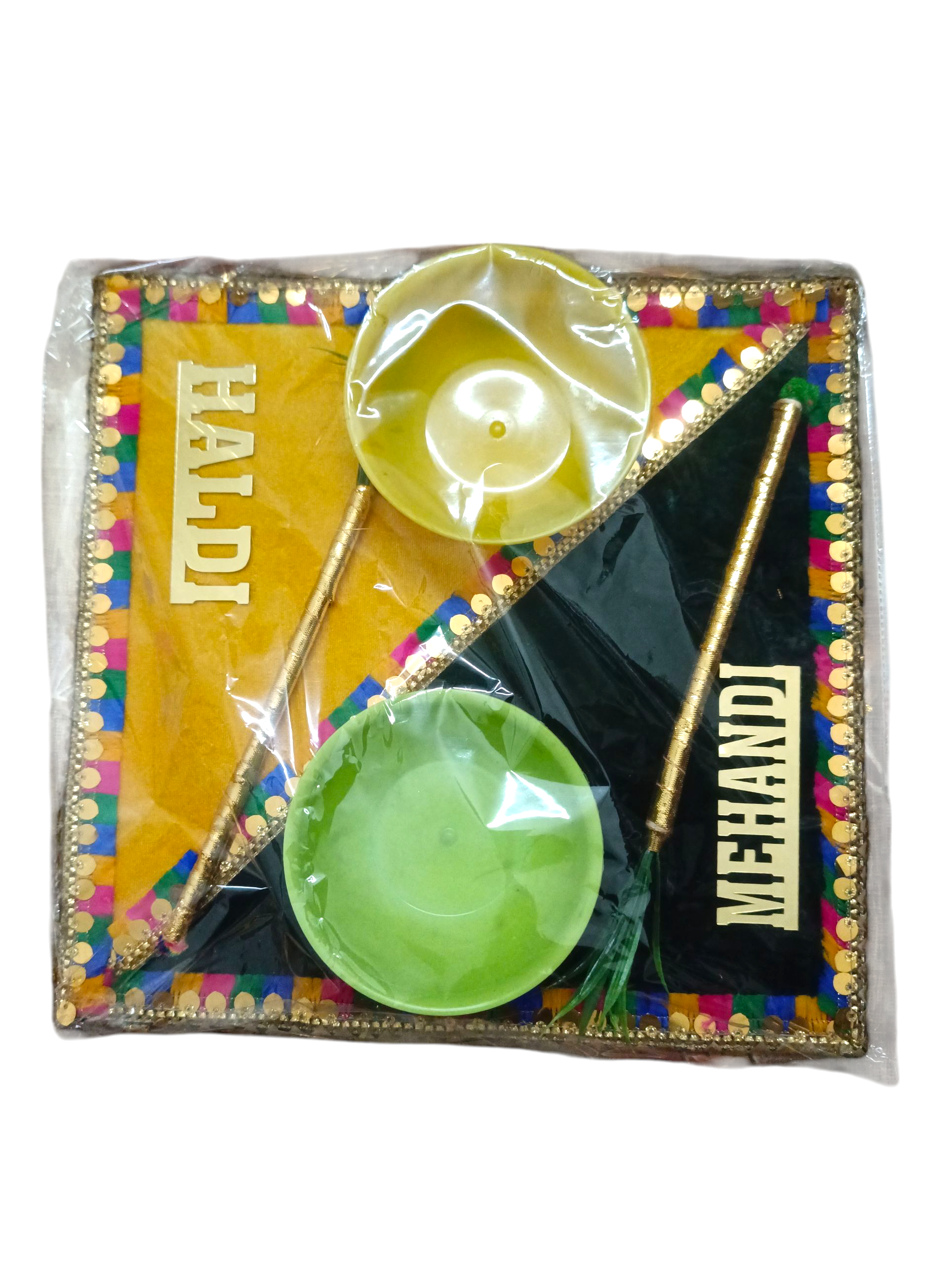 Traditional Punjabi Batna & Mehndi Ceremony Thali Set – Decorative Ritual Tray with Bowls & Sticks